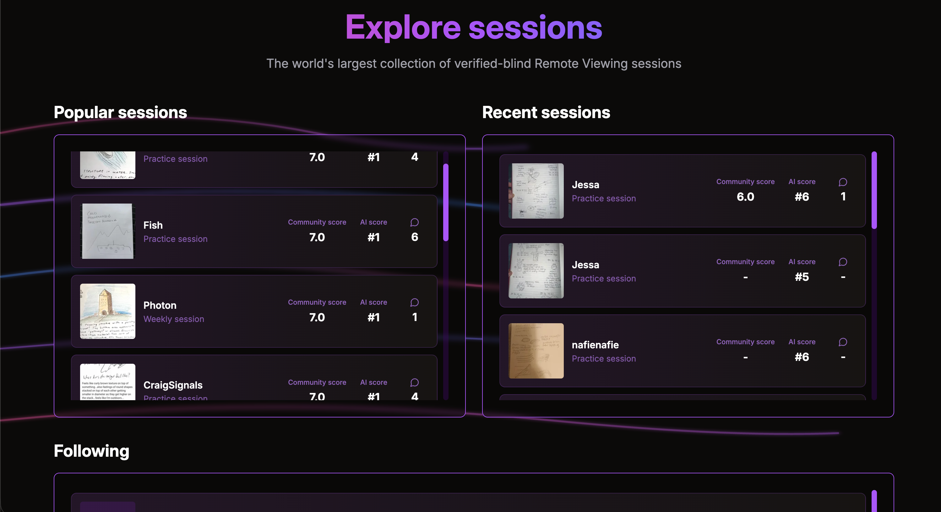 Launched group sessions - coordinate remote viewing experiences with multiple people working on the same target. Perfect for classes, practice groups, or friendly competitions. Group creators can even stay blind to the target selection and participate alongside members